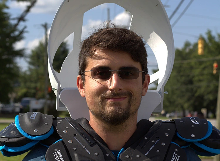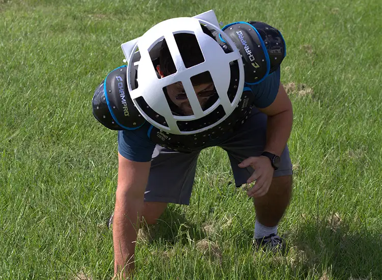 The Football Head and Neck Protector is a pioneering safety device engineered to enhance head protection in football. This innovative addition to traditional helmets is designed for players who face the rigorous physical demands of the sport, from sixth graders to college athletes. The apparatus features a combination of cranial padding and/or a robust face guard, forming a protective cage around the helmet. Its primary function is to absorb the impact during tackles and collisions, crucial in a sport known for its intensity. The design is compatible with standard football shoulder pads, attaching seamlessly without disturbing the chest laces.