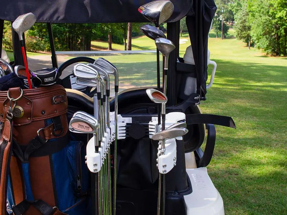 Our client came to us to develop a golf bag alternative that allows golf clubs to be easily snapped in and out of the golf bag, instead of lifting out of a traditional golf bag. Our client has shoulder issues and has had many surgeries which affects how he lifts objects over their head. He noticed that when he pulled his golf clubs out of a traditional golf bag it caused strain on his shoulders. Inventions Unlimited designed a solution that is simple to use and stylish. The patent-pending Golf Club Holder is an alternative to a golf bag that eliminates the need to lift each club out. This product is essential for golfers with limited mobility. This product attaches to the golf cart and can be taken off and installed in less than 30 seconds but can be intended for long-term use. The golf club holder comes with an optional snap-in rain guard to keep club handles dry. The product is an innovative solution to aid golfers with limited mobility.