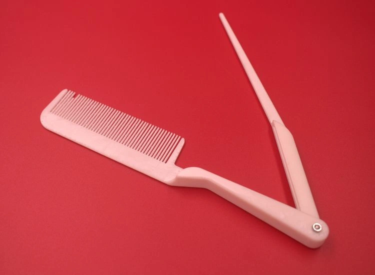 The Hair Holding Comb is designed to revolutionize your hair trimming experience with its cutting-edge features. With no need to exert force to open, thanks to the tension spring that applies outward force, you can bid farewell to hand strain and awkward angles. The absence of finger holes offers enhanced flexibility, enabling a multitude of angles for precise self-haircuts. Plus, the wide comb surface serves as a protective barrier, preventing accidental trimming of surrounding hairs, ensuring a clean and precise result every time. Crafted with a slim and flat design, this device allows for seamless cutting and blending, especially in areas where shorter hair lengths meet, such as the sides and back of the head. Moreover, its innovative construction places the spring and hinge far from the comb/grip area, presenting a sleek design that minimizes snagging or pinching of hair.