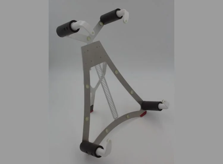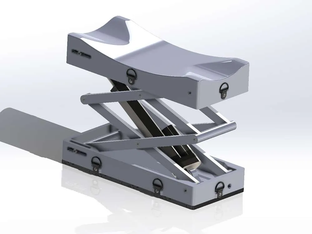 The saw support allows users to set up their table saw anywhere. It provides a stable way to use your saw horses as legs for your table saw, making it possible to work outside with a table saw without legs.  The product is durable and mounts directly to the table saw.  It can be screwed or nailed  to the table saw for further support. The client is a carpenter and travels often for work. He wanted an alternative stand for his table saw. They are currently looking for funding to bring this idea to the marketplace. The product took 5 iterations to perfect. The product is made from Carbon fiber plastic and steel.
