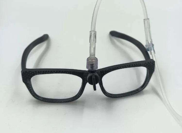 These therapeutic irrigation glasses are an innovative solution designed to deliver controlled saline directly into the eyes through a discreet tubing system integrated into the eyewear. Ideal for individuals suffering from dry eye, allergies, post-operative irritation, or exposure to harsh environmental conditions, these glasses provide a hands-free alternative to traditional eye drops. A centralized connection point located at the bridge of the glasses evenly distributes saline from an external reservoir through medical-grade tubing into each eye, offering consistent hydration and relief. Lightweight, durable, and compatible with standard IV or saline bags, the glasses are easy to use at home or in clinical settings. This groundbreaking eyewear combines comfort with functionality, making it a valuable tool for ongoing ocular therapy and daily eye care.
