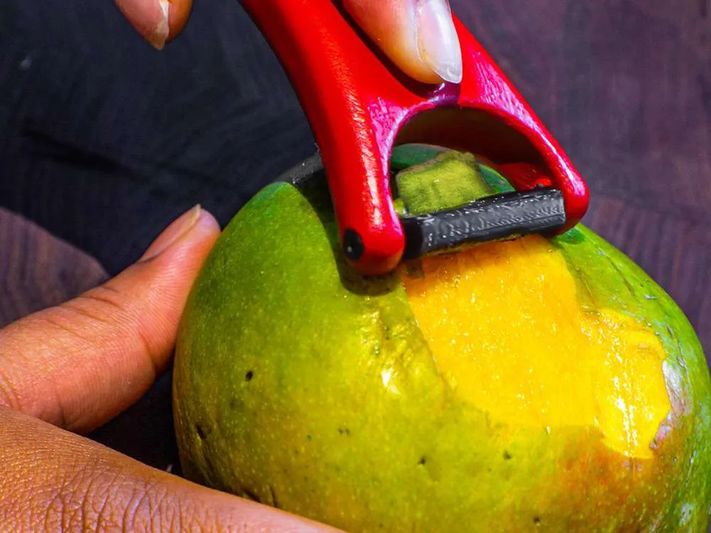 The patent pending Mango Peeler is a fruit peeler that automatically scores the fruit while you peel. The blade rotates to match the contours of any fruit but is designed to save a step while preparing mangos. This product is also a great solution to peel thicker skinned fruits. This design challenged Inventions Unlimited to design and create a blade safe enough for household use but sharp enough to effectively peel and score fruit. The blade is made from 316L stainless steel for sanitation and cleaning purposes. Our client wanted to save himself a step when preparing mangos, so he combined peeling and scoring into one action. He wanted a sleek, futuristic looking product. The design is sleek but study and perfect for any household.